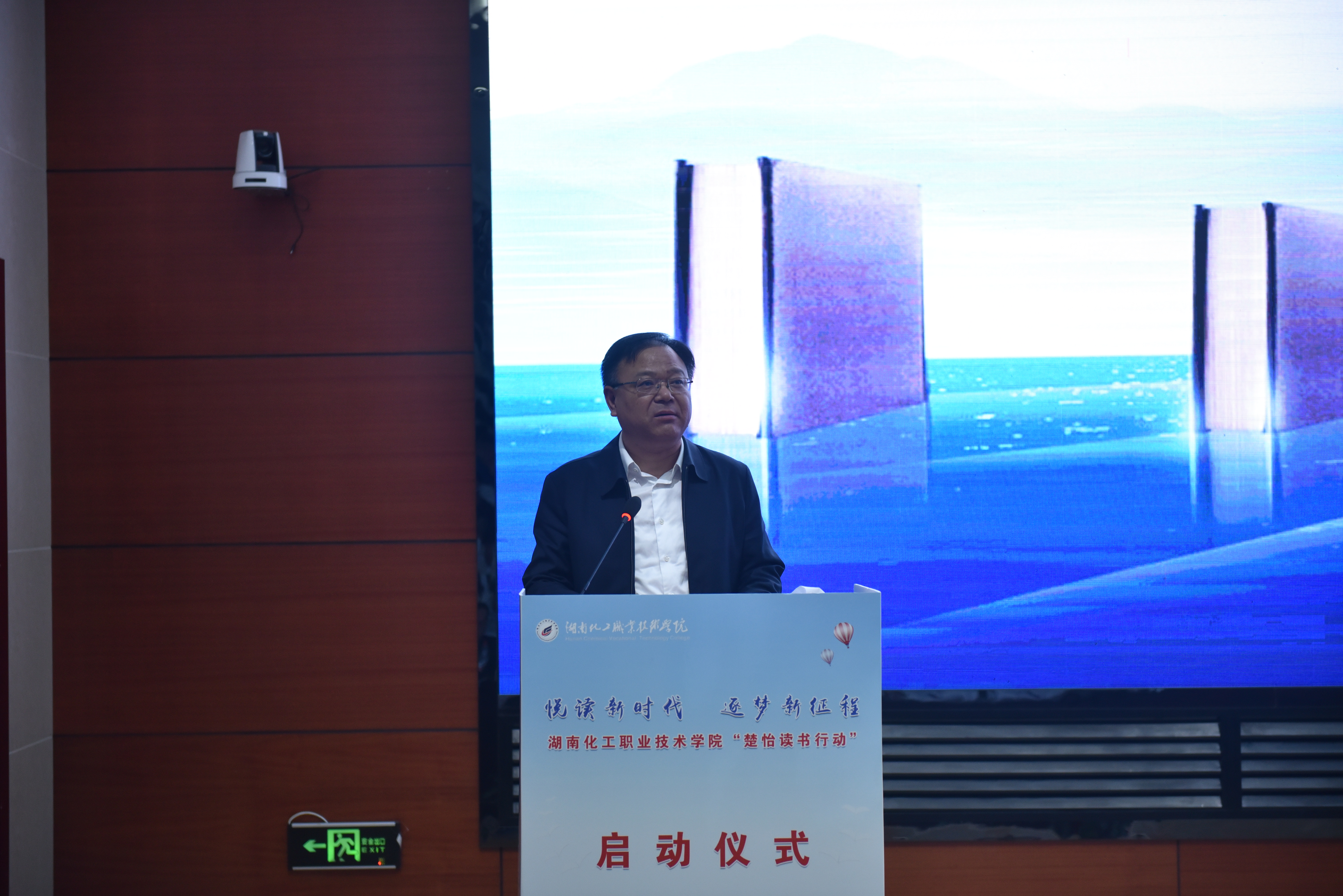 随后,副校长魏勇军宣读《湖南化工职院楚怡读书行动方案》,在全校推动“主题读书大会”“读书风采展示”“‘最美阅读空间’打卡”的“三个一”品牌活动,形成“书记校长带头、教师示范、学生参与”的工作机制。