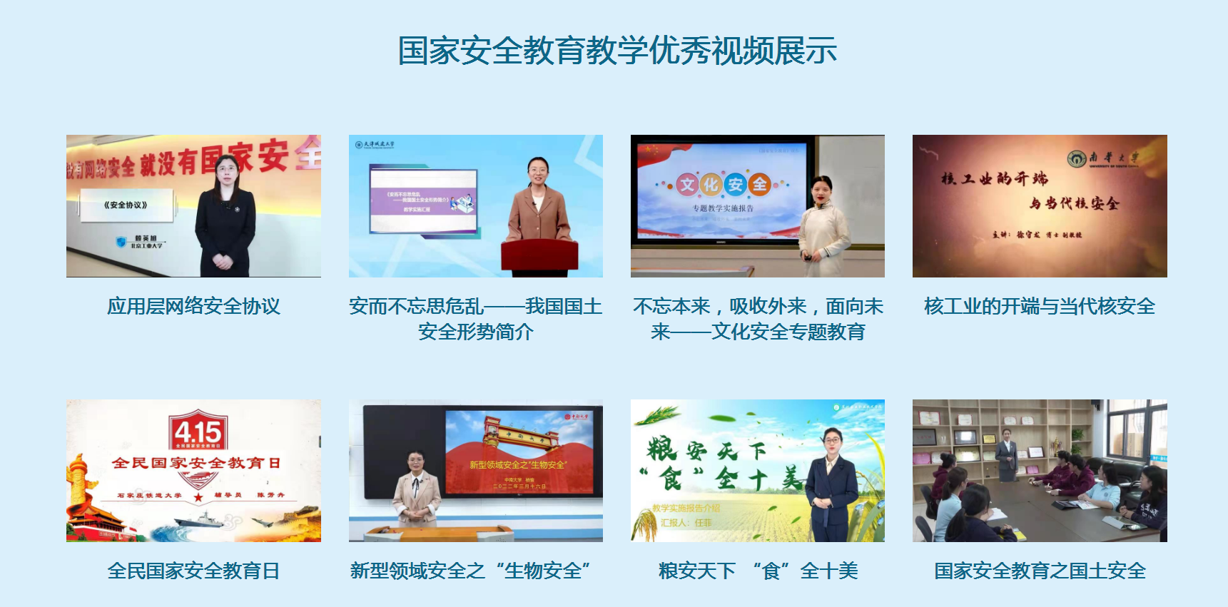 本次国家安全教育教学视频征集与展示活动由教育部思想政治工作司指导,中国高等教育学会保卫学专业委员会、全国高校思想政治工作网、教育部高校思想政治工作创新发展中心联合举办,湖南大学、重庆师范大学共同承办。征集主题包括总体国家安全观、政治安全、国土安全、军事安全、经济安全、文化安全、社会安全、科技安全、网络安全、生态安全、资源安全、核安全、海外利益安全、新型领域安全(太空、极地、深海、生物等)等专题教育教学视频。到目前为止,在中国高等教育学会保卫学专业委员会微信公众号首发的共有十六个高校的作品入选展播,我校作品为湖南地区唯一入选的高职院校作品。