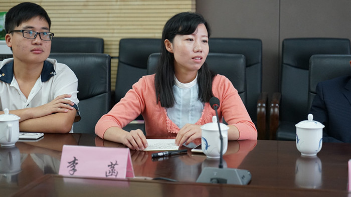 学生代表化学工程学院彭林、向洪鹏、制药与生物工程学院扈嬛、商学院严欢分别谈了学院信息化教学改革应用于课堂的体会,世界大学城云平台足不出户就完成作业提交,微课教学变“被动学习”为“主动学习”,化工仿真平台模拟真实操作提高了解决问题的能力,教育信息化让学习插上了翅膀。