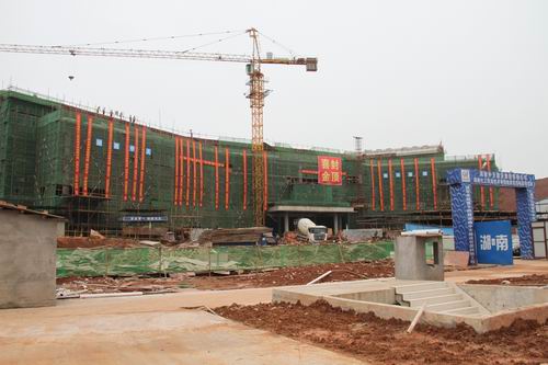 2014年5月29日上午11:18,原本阴天此时放晴,位于株洲职教大学城的湖南化工职业技术学院新校区图书馆喜封金顶。