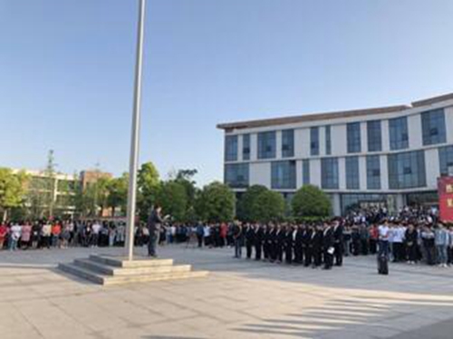 国旗护卫队迈着整齐的步伐护送国旗入场,伴随着雄壮的国歌声,鲜艳的五星红旗迎着朝阳冉冉升起,全体师生列着队,整齐地肃立在国旗下,向国旗敬礼,齐唱国歌。现场的每个人都被这庄严的仪式所深深感染,爱国之情油然而生!仪式结束后,学院党总支副书记温拥军在国旗下发表了“珍惜美好生活 刻苦努力学习 做祖国栋梁之材”的主题讲话。他号召同学们珍惜来之不易的幸福,珍惜青春,努力学习,练好本领,回报社会,不负历史赋予的崇高使命,为实现中华民族伟大复兴的中国梦而努力奋斗!学生纷纷表示,今天这种气势壮观、场面宏大的升旗仪式让我们再次接受了一次爱国主义精神的洗礼,我们要好好学习,把爱国之情化为报国之行。
