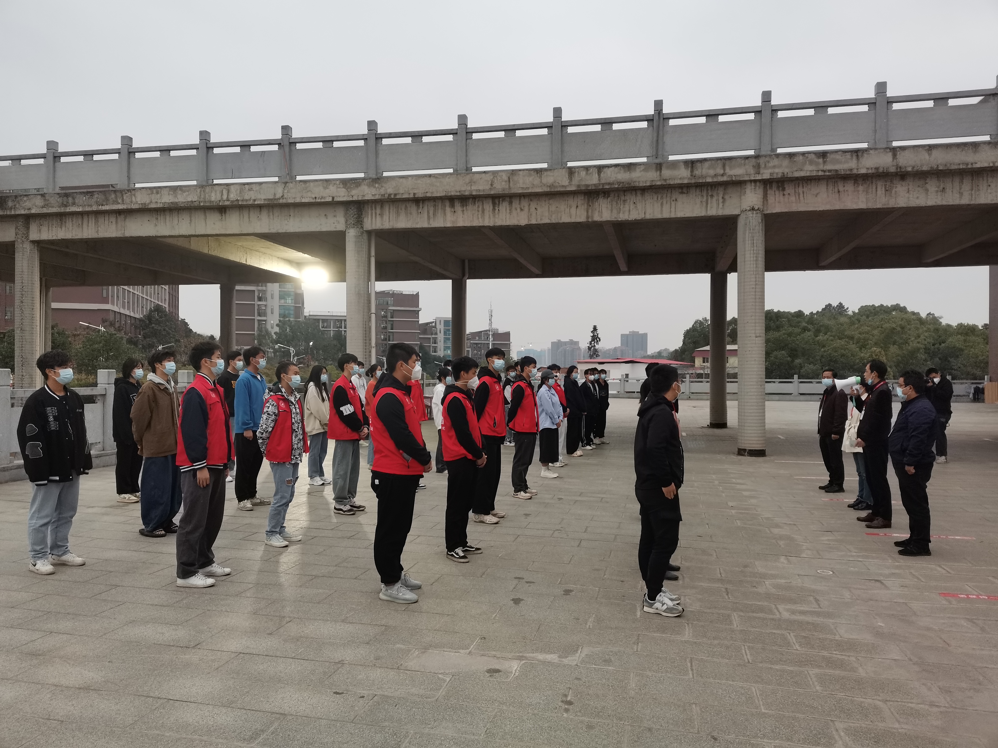 为贯彻落实学校疫情防控要求,学院第一时间召开线上党政联席会研究布置抗疫非常时期各项工作,教学方面要求做到“??尾煌QА?,全体任课教师要精心做好线上教学准备,确保教学质量;学生工作方面要尽全力做好学生生活保障和服务,确保学生身体健康、生活有序;重点项目建设方面,要求改变工作模式,实行居家办公,确保项目建设有序推进。当前最重要的工作是抗疫,首要的任务是组织一线抗疫队伍。总支书记彭志宏要求:要让党旗在抗疫一线飘起来、党徽在抗疫一线亮起来、党员在抗疫一线动起来。在学校发布校园封控管理通告的第一时间,党总支紧急召唤专职辅导员、党员教师进驻学校值班值守。11月3日,彭志宏书记、黄铃副院长与尹琦、李建伟、胡志勇、徐娟、李湘、方松刚、殷洁、帅澜婷、刘芯男、郭柃妤、谢洁等11位专职辅导员一起住校,组织开展疫情防控工作。11月6日起,唐淑贞副院长、温拥军副书记,专职辅导员冯灿、凌文静以及刘小忠、廖红光两位老师都在健康码正常后第一时间加入抗疫先锋队,组建了一支 “班子成员全部到位、辅导员全员参与、党员教师为补充”的19人教师抗疫先锋队。同时,组织学生党员、学生干部、志愿者成立学生抗疫先锋队,形成了党建引领的疫情防控指挥调度工作体系,凝聚疫情防控一线的最强合力。