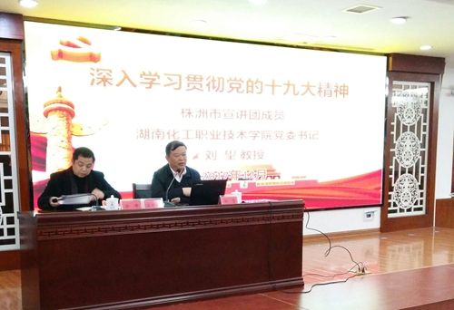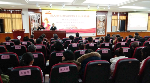 12月1日下午,党的十九大精神株洲市委宣讲团成员、我校党委书记刘望教授受邀到醴陵陶瓷烟花职业技术学校宣讲党的十九大精神。醴陵陶瓷烟花职业技术学校领导、教师等200余人认真听取了讲座。
