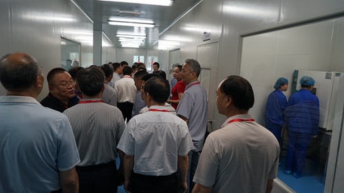 我校党委书记刘望教授带领学校领导及相关部门负责人热情接待,副校长隆平就化工与制药生产性实训中心特色与亮点为参观考察人员进行了一一介绍。如:借鉴了青岛啤酒精酿工艺,能自主酿制黑啤的啤酒生产实训车间;按照最新版GMP标准设计的GMP制药车间;“模拟信号+现场真实设备”的现代化教学工厂——煤制甲醇生产车间;引企入校,按照两链接两平台建设思路打造的化妆品生产车间及品牌推广中心等,深深震撼了现场每一位参观考察的领导和专家。