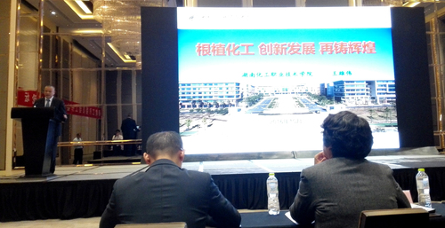 在中国化工教育协会分委会——职教工作委员会工作会议暨院校长论坛上,我校与兰州石化职业技术学院、承德石油高等专科学校、上海石化工业学校4所学校交流了办学经验。王雄伟校长在会上作了《根植化工 创新发展 再铸辉煌》的主题报告,报告以先进的理念、对行业的执着,以及丰富的办学成果、详实的数据、精美的画面得到了领导和同行的高度认同,提高了我校在行业院校中的影响。
