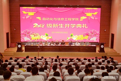 9月28日晚七点,自动化与信息工程学院在学校图书馆报告厅隆重举行2018级新生开学典礼??У淅裰骰岢∩柙谕际楣萑疟ǜ嫣?,同时在图书馆二号报告厅设立分会场进行同步直播。自信学院全体领导、辅导员、新生班主任及2018级新生750余人参加了开学典礼。