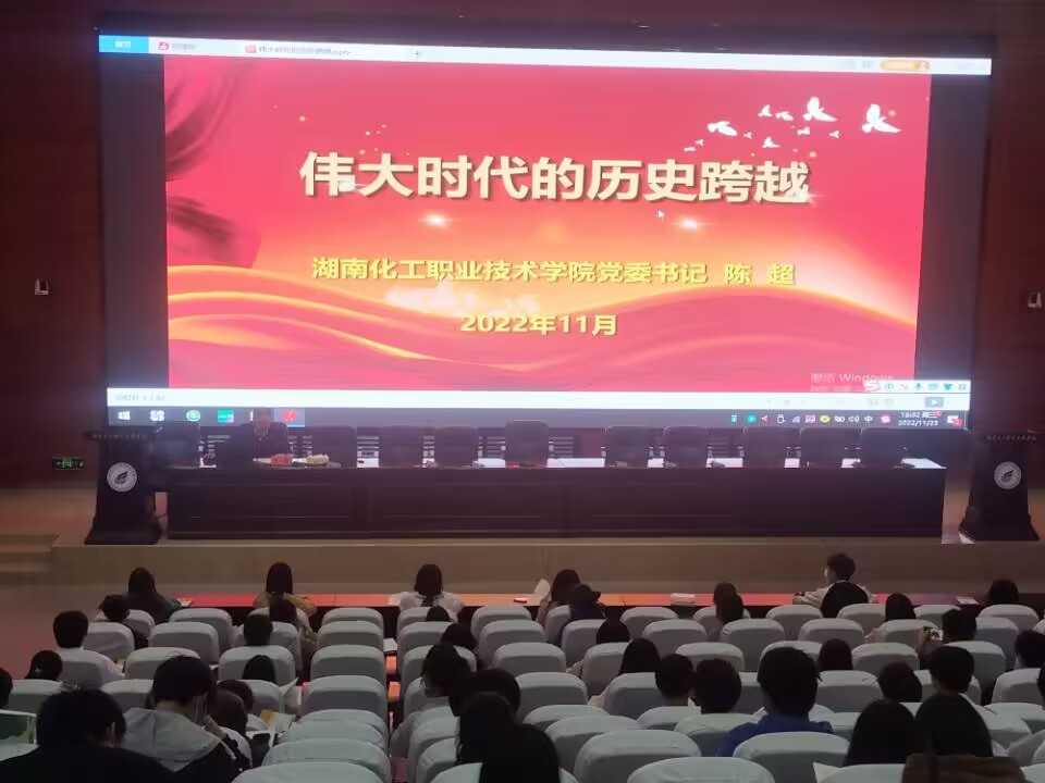 11月23日,党委书记陈超教授结合党的二十大精神,在图书馆二楼三号报告厅以《伟大时代的历史跨越》为题给学生上党课。