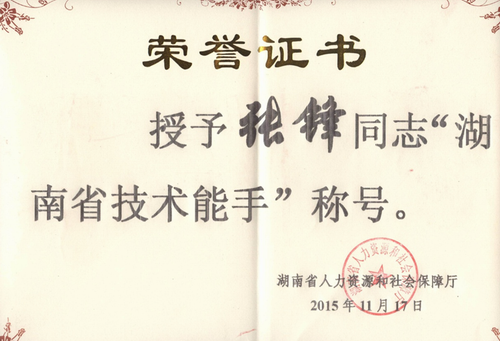 机电工程学院教师喜获“湖南省技术能手”称号