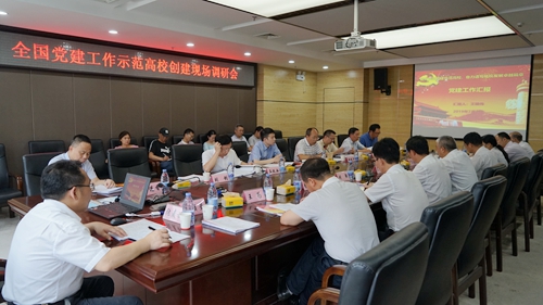 专家组首先听取了学?;惚ā;惚ɑ嵘?,党委副书记、校长王雄伟对专家组一行来校调研指导我校党建工作表示衷心的感谢,向专家组汇报了我校在培育创建全国党建工作示范高校工作中取得的成绩。党委副书记刘毅就学校党建工作理念及建设思路做了简要汇报。学校组织部部长张麦秋对全国党建工作示范高校培育创建工作方案与中期建设评估检查等方面做了详细说明。