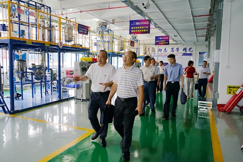 雷桂平一行还考察了我校图书馆、校史馆、化工实训中心、二级学院党员学习教育场地等,并对我校优美的校园环境、先进的实训场地、丰硕的教学成果予以高度赞许。