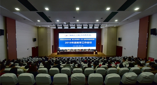 校长王雄伟教授在会上作了2018年教学工作报告。他指出,2018年是贯彻党的十九大精神的开局之年,也是我校内涵建设成果丰收之年。第六届黄炎培职业教育奖优秀学校,国家级社科基金项目、现代学徒制项目和专业教学资源库备选库项目立项,国家级教学成果奖、全国职业院校教学能力比赛和学生技能大赛获奖加权得分在全国高职院校排名第41位、湖南省排名第5位。毕业生就业质量提升,技能抽查和毕业设计抽查成绩优异,各项成果纷至踏来,这是全校教职工紧紧围绕“建卓越、争一流、创优质”的结果。2019年又将是学校发展不平凡之年,全国党建工作示范校建设、争全国一流特色专业群、创国家优质校,每项工作都需要有开放的思想、务实的态度、拼搏的精神、团结的力量去推进落实。
