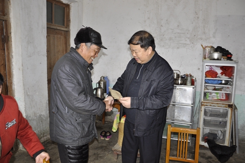 在与村干部及驻村工作队进行了简短而又深入的交谈后,刘望一行开始实地走访。当天,刘望一行先后到段春桃、陈仁政、张园娇、肖战跃等贫困户家中进行走访。每到一户,结对领导都会为自己的帮扶对象送上500元帮扶资金,与他们交谈、交流,了解他们的的家庭情况、生活开支、扶持养殖业进展等情况,听取他们谈及目前存在的困难和问题、对生产生活方面的主要打算和诉求,并详细做好记录。同时,鼓励他们树立信心,克服困难,要在村委会和驻村扶贫工作队的帮助下,彻底告别贫穷,让日子越过越红火。