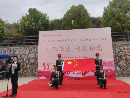 10月25日中午,制药与生物工程学院在学校篮球场举行了以“十八而志,青春向党”为主题的第六届啤酒文化节开幕式暨2021级新生成人礼仪式。校团委刘其琛书记、苏敏副书记,制药学院党总支王继山书记、王伟成副书记以及学院的辅导员老师们出席了本次活动。