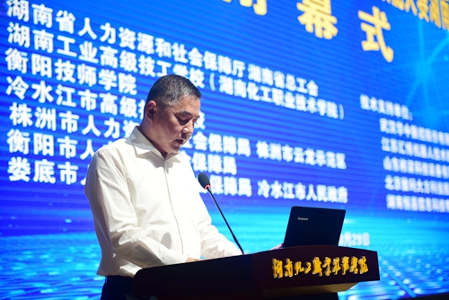 省人社厅鉴定中心主任廖云飞宣读竞赛结果,省人社厅职业能力建设处副处长刘旸宣读大赛表彰通报,省总工会副巡视员王湘静宣读湖南省五一劳动奖章表彰决定。闭幕式上,对获奖选手和“湖南省技术能手”、“湖南省五一劳动奖章”的获得者以及获得比赛“突出贡献奖”的单位进行颁奖。