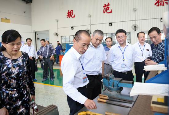 朱厚望带领大家参观了航空文化园、电子产品生产性实训基地、发动机维修实训中心、协同创新中心、数控实训中心、机加实训中心、航空服务实训中心等场所。在谈到参观的感受时,王雄伟校长对航空职院严格规范的管理和浓厚的文化氛围赞不绝口,他要求随行人员要认真学习观摩,将一些好的做法融入到学院新校区建设中去。