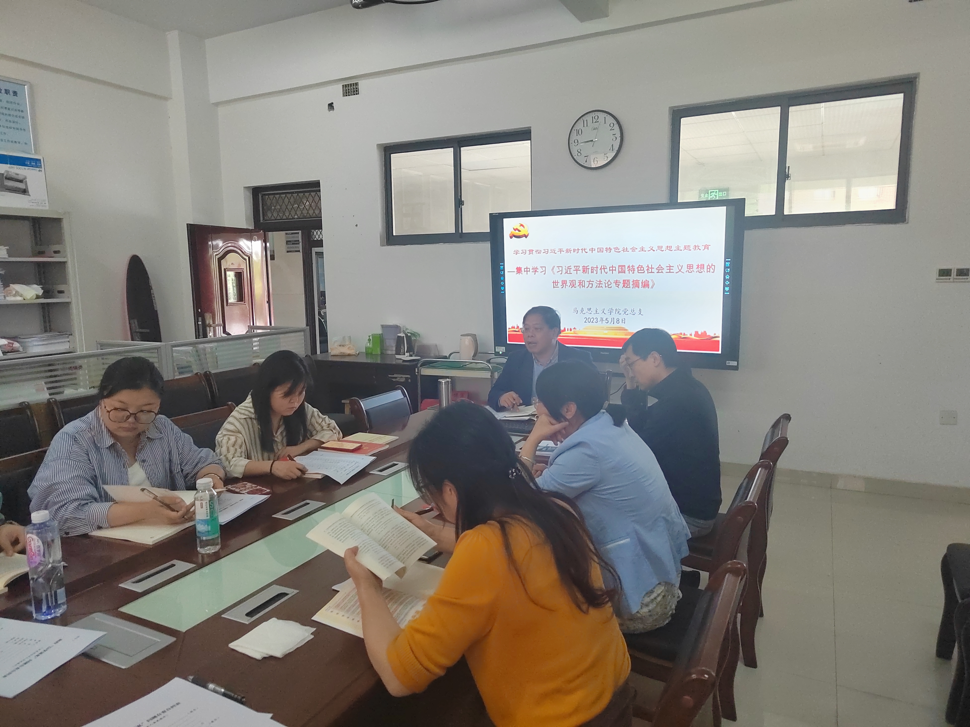 根据学校深入开展学习贯彻习近平新时代中国特色社会主义思想主题教育的总体部署,按照马院主题教育实施方案工作安排,5月9日下午,马院党总支组织全体教师党员在励志楼110开展主题教育集中学习原文原著活动。