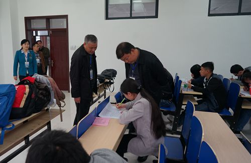 笔试考场,轻轻走进教室,仔细查看考生答题