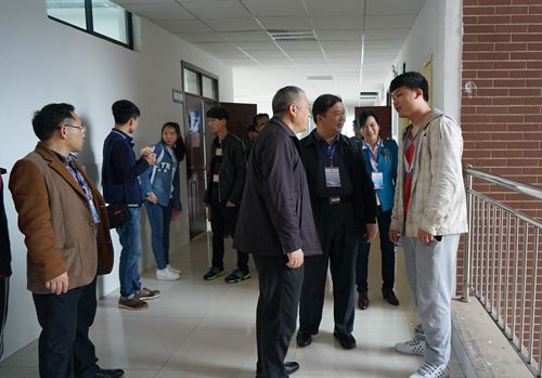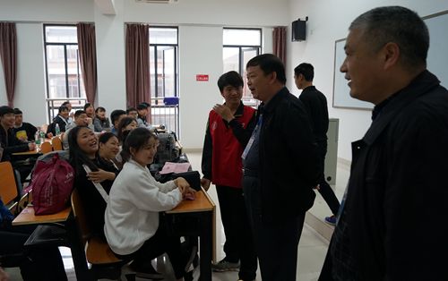 面试候考室内,学院领导与等待面试的考生亲切交流