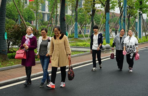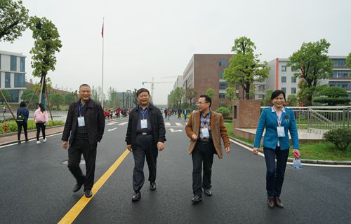 学院党委书记刘望、校长王雄伟、副校长隆平和党政办主任张麦秋一起走在巡考路上