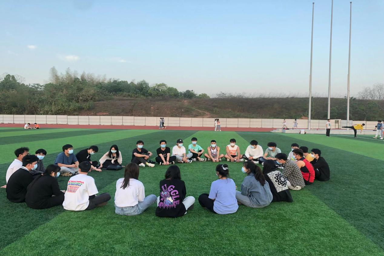 发展对象培训班学员在运动场、宿舍、校园广场进行小组讨论