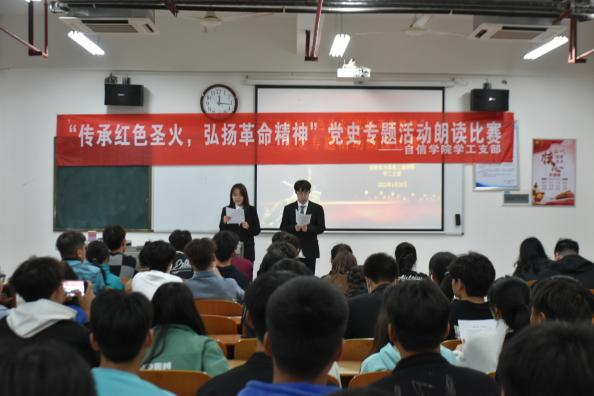 为了让广大同学在红色经典中感受和学习我们党在长期奋斗中铸就的伟大精神,4月27日,自动化与信息工程学院团总支学生会在笃学楼101、102教室举办了以“传承红色圣火,弘扬革命精神”为主题的红色经典朗诵活动。