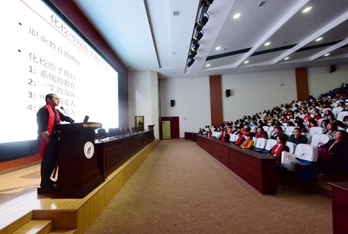 11月18日是湖南化工职业技术学院建校60周年校庆日,下午1:30,优秀校友北京化工大学刘文教授在学校图书馆二楼报告厅为大家带来了一场精彩的前沿学术讲座。讲座由学校副校长胡颖蔓主持,招生就业处副处长唐丽、化学工程学院学工办主任尹琦、刘文教授的亲友团和500余名学生一同聆听了讲座。