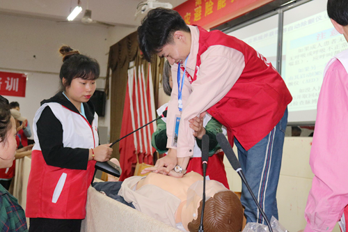 在与宝利班同学们交流之后,我校志愿者们参加了致公党株洲市委致爱小组筹办的湖南省红十字会“送应急护理培训进校园”活动,既当志愿者,又当学员,与“致公·宝利班”的学生和株洲工业学校的学生热情互动,积极参与培训体验,既让志愿者们学习了急救救护知识,又充分展现了我校志愿者的良好精神风貌,实践育人效果显著。