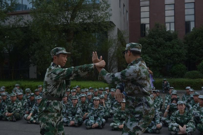 烈日当空,军训在如火如荼地进行当中,新生们顶烈日、战暑热、磨意志、练体格,仍精神饱满,斗志昂扬。为充实学生们的军训生活,并给新生提供一个展示自我的舞台,在军训休息之余,各个连队积极组织新生进行才艺展示。
