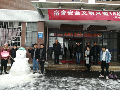 雪,一直在下。将近中午时,校长王雄伟和副校长胡颖蔓带领保卫处处长王湘平、学工处副处长欧彦麟和机电学院党总支副书记蒋晓斌等部门及二级学院相关负责人到了学生宿舍看望节日在校学生。