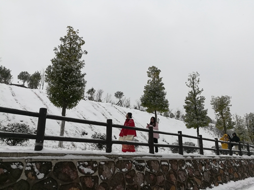 这时候,展现在眼前的是一幅化院雪景图,有雪有人,有景有情。