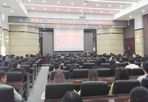 为深入学习宣传党的十九大精神,11月2 日,学校关工委、校团委、学工处组织全校学团干部在行政楼一楼会议室参加了学习贯彻党的十九大精神辅导报告会。学校原党委书记、现校关工委常务副主任张孝理教授作辅导报告。报告会由校关工委秘书长姜红辉同志主持。