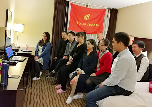 当地时间10月18日晚,易卫国组织考察交流团全体成员开展了临时党支部学习活动,所有成员一起观看了十九大开幕式,学习十九大报告,开展了学习讨论。