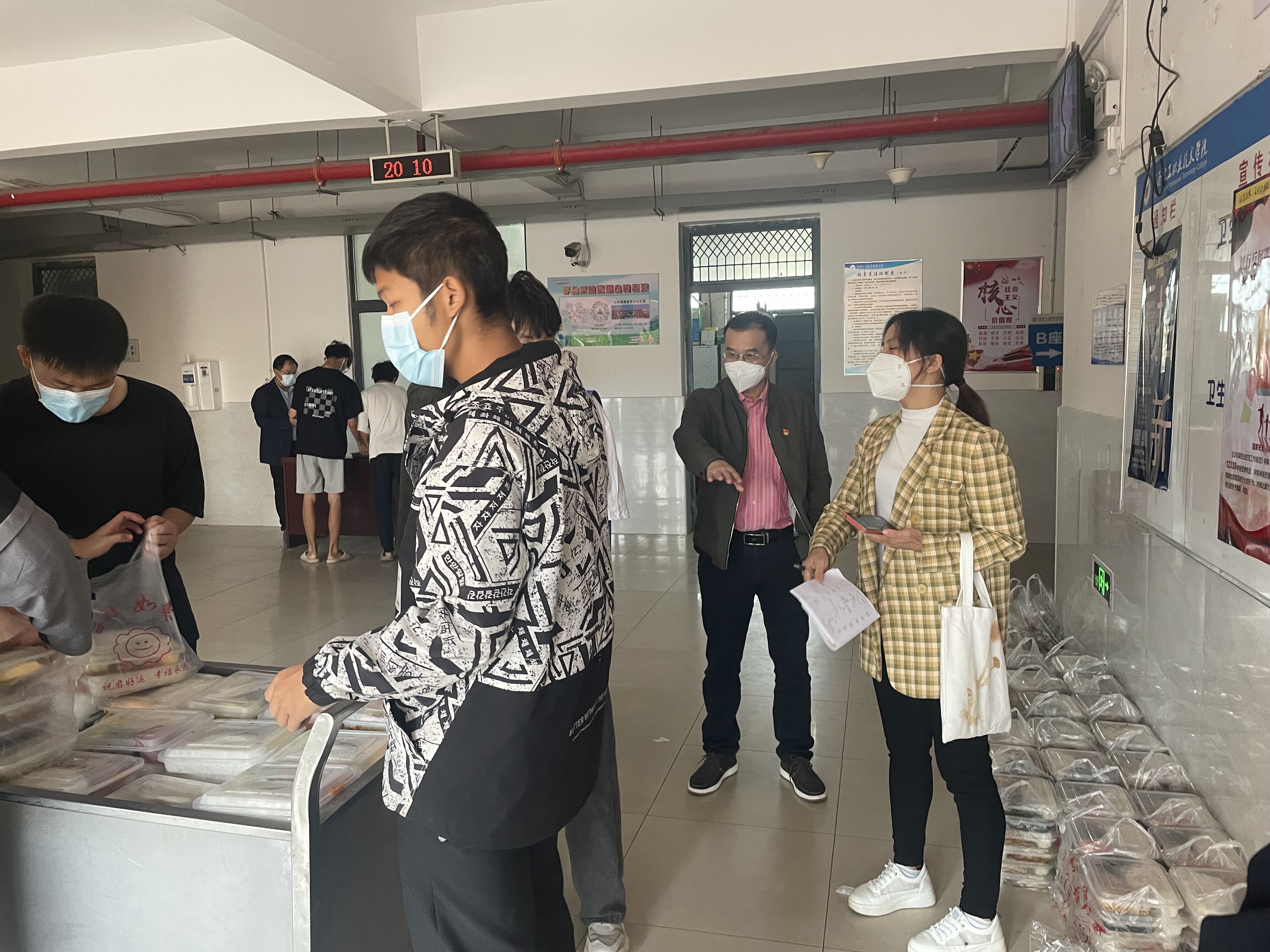 疫情初期,按规定学生不得离开寝室,机电学院六位教师和十余位学生志愿者组成了送餐组,为7栋全体学生运送一日三餐。早晨六点多,大家从食堂取餐、清点份数,然后分发至各层,再依次敲开各寝室的门。完成早餐的分发,稍作休息,又立刻着手准备午餐份数清点及分发。如此周而复始,光一日三餐的清点与分发都要耗费大半天时间。等发完全栋学生的餐食,老师和志愿者们才开始就餐。由于人力有限,送餐量大,一些学生反馈拿到手的盒饭是凉的。为此,“送餐组”定期调整7栋宿舍各楼层的送餐时间,尽最大能力让同学们吃到热饭菜。每天中午两点、晚上八点,志愿者们开始统一清运餐饮垃圾,确保同学们的居住环境干净整洁。