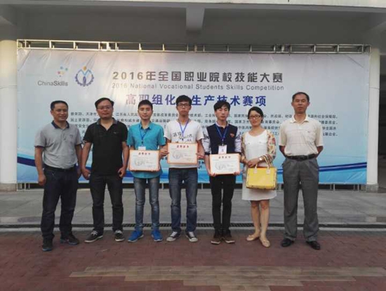 从刚结束的2016年全国职业院?;ど际跫寄芫喝浣毕殖〈聪惭?,我院学子喜获2016年全国职业院校技能竞赛化工生产技术赛项团体二等奖。