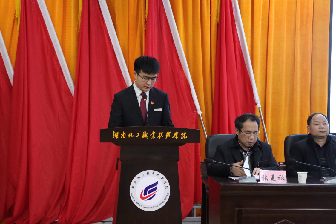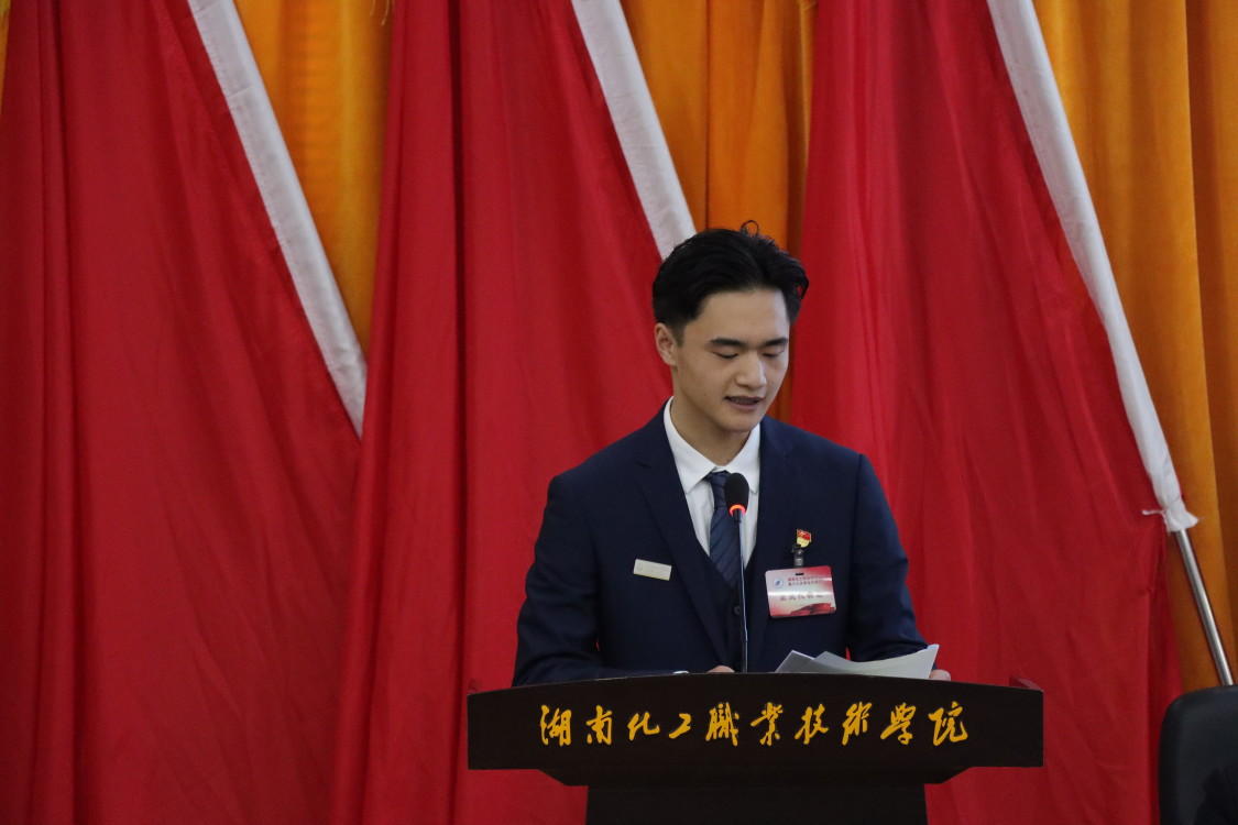 第十七届学生会主席陈研作《湖南化工职业技术学院第十七届学生会工作报告》,全面总结学生会过去一年的工作,围绕“高举团旗跟党走,思想引领当先锋;汇聚青春正能量,共筑育人新平台;拓展沟通新渠道,搭建维护学生权益新平台;聚焦改革再发力,与时俱进促发展”等四个方面汇报工作成果,并从“永葆初心本色,坚定理想信念;永葆本色服务,提升青年服务意识;永葆先锋本色,关注学生诉求,维护学生基本权益”三个方面对未来学生会工作建言献策。