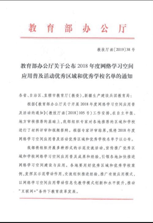 近日,教育部办公厅公布了2018年度网络学习空间应用普及活动优秀区域和优秀学校名单,我?;衿廊缪翱占溆τ闷占盎疃判阊?。