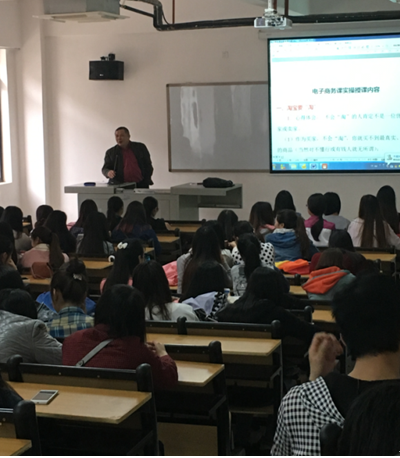 4月26日下午,商学院在公教楼204多媒体教室举办了“网店经营实战”讲座。本次讲座由学院成教培训处处长周睿祺主讲,商学院电子商务专业部分老师及2014级电子商务等专业学生参加。