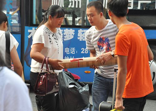 学院教师为新生家长拿行李