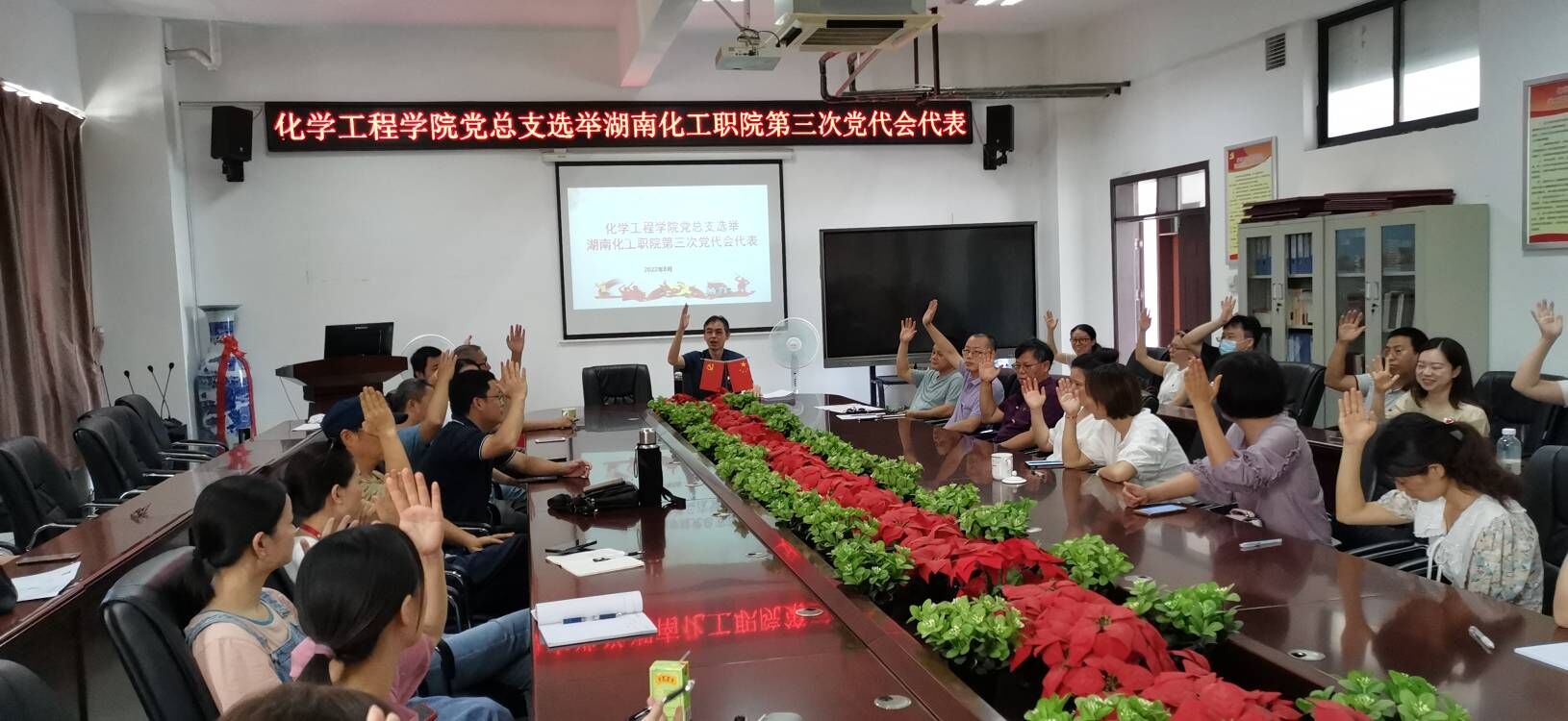 8月16日上午,化学工程学院党总支在厚德楼206会议室召开全体党员大会,选举出席中国共产党湖南化工职业技术学院第三次代表大会代表。此次会议化学工程学院党总支应到党员51名,因事因公请假9人,出席会议42名。会议由党总支书记彭志宏同志主持。
