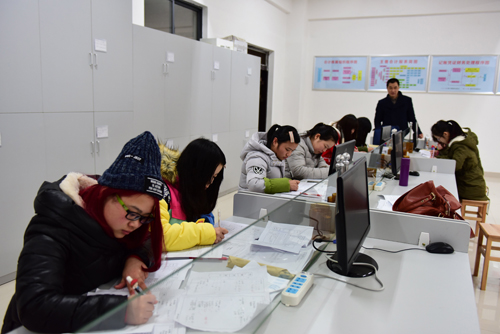校长王雄伟向综合治理检查相关领导汇报校园安全工作情况