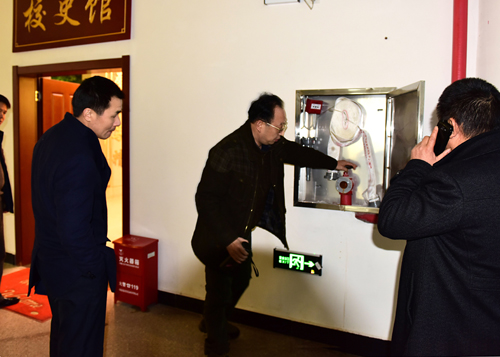 党委书记刘望向综合治理检查相关领导汇报校园安全工作情况