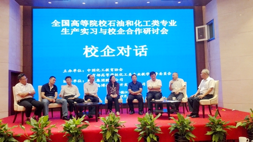 会议举行了“院校、企业共话构建大学生生产实习与校企共赢的合作模式”校企对话。对话由中国化工教育协会会长郝长江主持,对话嘉宾分别是湖南化工职业技术学院校长王雄伟、奥克集团股份公司董事长朱建民、秦皇岛博赫科技开发有限公司总经理李国友、浙江工业大学副校长李小年、中石化北京燕山分公司教育培训中心主任谢景山、北京东方仿真软件技术有限公司总经理许重华、天津渤?;ぜ沤逃嘌抵行母敝魅窝钣澜艿?。对话就大学生生产实习的重要性及面临的问题、高等学校大学生生产实习的经验进行了充分交流。