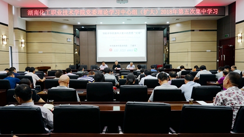 6月21日,湖南化工职业技术学院党委理论学习中心组(扩大)举行2018年第五次集体学习会,深入学习领会习近平新时代中国特色社会主义思想的科学理论体系。学校党委中心组成员和中层干部参加学习会,党委书记刘望教授主持学习会并作总结讲话。