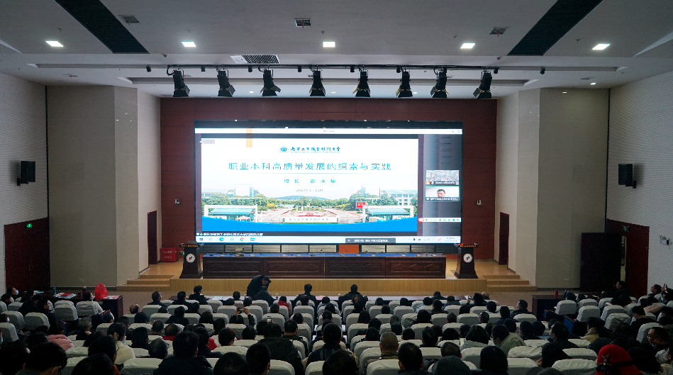 全国职业教育专家、全国首家公办本科层次职业教育学校南京工业职业技术大学校长谢永华教授作题为《本科层次职业教育改革创新的探索与实践》的专题讲座。谢永华从职业本科办学思考、高质量发展探索实践、学校未来发展规划等方面对职教本科创建进行了详细阐述和全面指导。