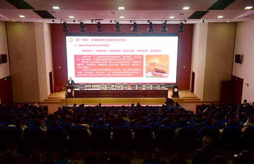 刘望从“全国教育大会的重大意义”“全国教育大会的精神内涵”“如何做好新形势下的教育工作”三个方面进行宣讲。他指出,要充分认识全国教育大会的重大意义,深入学习领会习近平总书记关于教育的重要论述,扎实推进加快教育现代化的重点任务;要科学解析全国教育大会的精神内涵,学校的发展要始终坚持“以人才为本、教师为主体,以育人为本、学生为主体”的办学理念,让关注基层,关心师生员工的生活成为一种常态;要深入思考如何做好新形势下的教育工作。培养什么人,是教育的首要问题。学校要持续增强“四个意识”、坚定“四个自信”,坚定不移维护党中央权威和集中统一领导,自觉在政治立场、政治方向、政治原则、政治道路上同党中央保持高度一致,努力构建德智体美劳全面培养的教育体系,形成更高水平的人才培养体系。