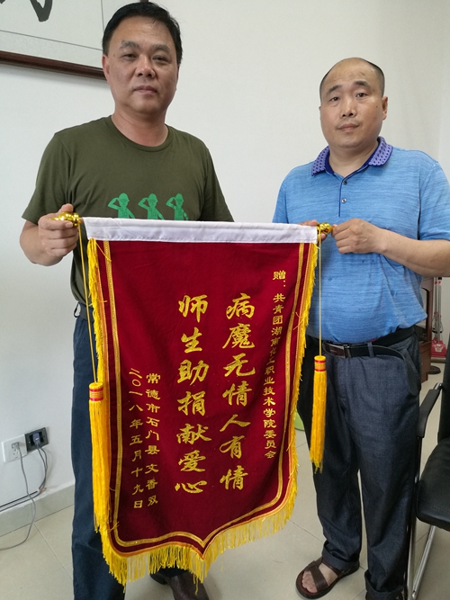 5月30日上午,文欣岚父亲专程来到学校送来了“病魔无情人有情,师生助捐献爱心”的锦旗及感谢信,感谢学校全体师生对文欣岚的关心帮助。自动化与信息工程学院党总支书记许建平代表学校师生接受了锦旗,并再次表达了对文欣岚的关心,同时叮嘱其父转告文欣岚,让她安心养病。让学校师生的爱心筑起生命长城,助文欣岚战胜病魔!