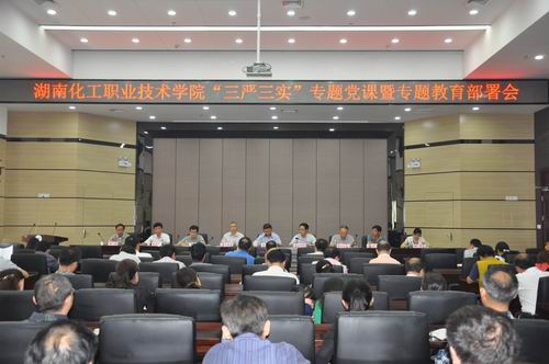 “三严三实”专题党课由学院院长刘望主讲,党委副书记、副院长石绍军主持,副书记王雄伟在会上宣读了学院关于印发《湖南化工职业技术学院开展“三严三实”专题教育实施方案》的通知(化职院党[2015]10号)。纪委书记兼工会主席游大庆在会上宣读了中共湖南省纪委办公厅关于认真贯彻落实《关于党和国家工作人员操办婚丧喜庆事宜的暂行规定》的通知(湘纪办发[2015]2号),重温了《湖南省纪委关于党和国家工作人员操办婚丧喜庆事宜的暂行规定》(湘纪发[2013]17号)。