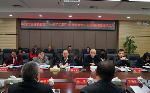 陈剑旄组长在汇报会上阐述了这次督查的意义和要求。今年省教育厅打破常规,将毕业生就业创业工作督查提前到三月份,按照省教育厅的要求,这次督查一是为了贯彻中央、省、市有关会议文件精神;二是为了有效督查学生职业发展、就业创业教育、就业创业课程建设情况;三是对相关学校落实就业创业有关要求所提供的物质条件和保障措施进行检查;四是就四所就业创业示范高职院校的示范作用发挥情况进行督查。这次督查,有5个规定动作,即情况介绍会、看现场、查资料、召开教师和学生两个座谈会、将一天的考察体会与意见汇总后向学院领导班子进行反馈。他代表专家组承诺,严格按照作风建设要求,客观公正地从就业创业角度进行督查,并表示虚心接受监督。