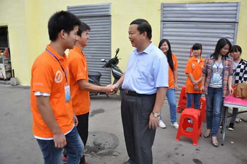 院长刘望在汽车南站迎新点与志愿者亲切握手