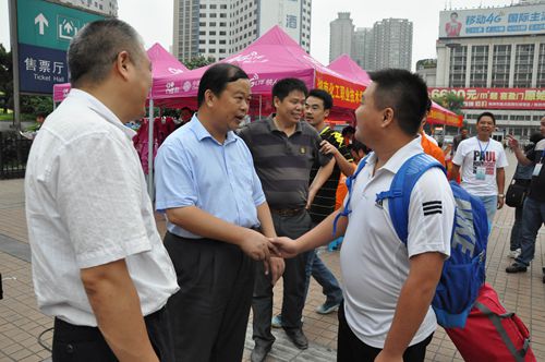 院长刘望在株洲火车站迎新点与2014级新生亲切握手